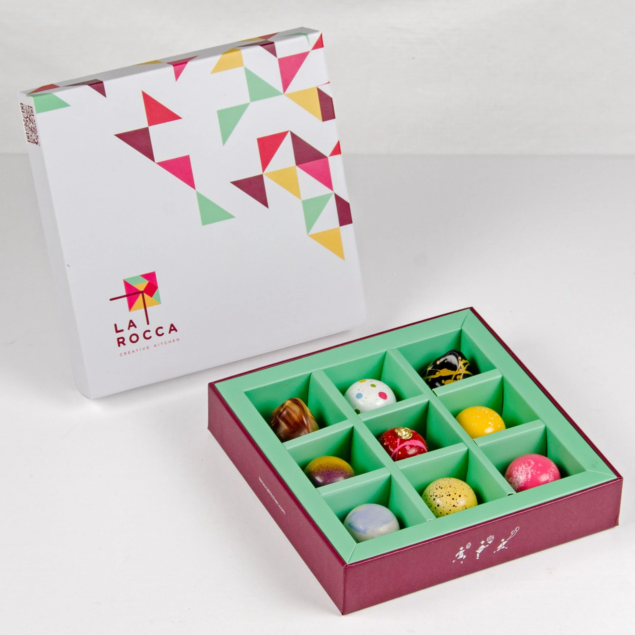 A work of Art! Each bonbon has unique combinations of textures and flavours. The care in making these bonbons can be appreciated from the time you open our beautiful box.